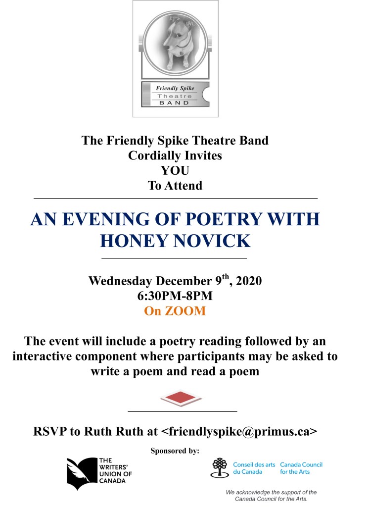 During lockdown for COVID, Ruth continued the work of Friendly Spike by organizing and publishing three unique books of poetry. They are now housed in Canadian archives, and thus they are getting more people involved in her compassionate embrace of all whose voices needed to be heard.