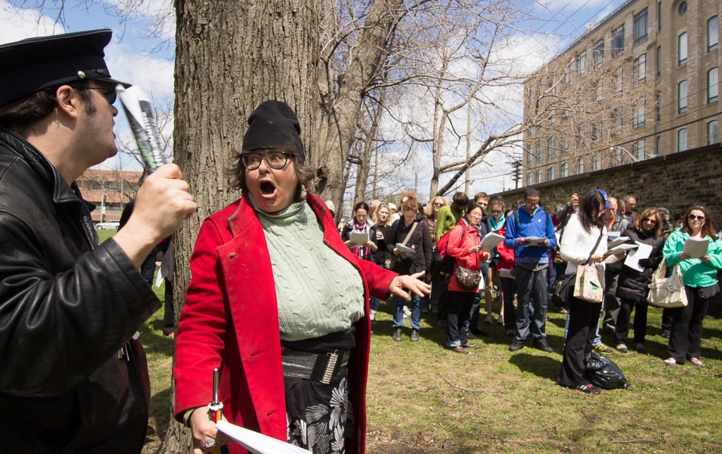 Darlene was a member of the ensemble cast of our production The Walls Are Alive With The Sounds Of Mad People (2011-2013). This was a lively historical tour around the psychiatric patient-built wall at Queen and Shaw Streets. Darlene played the role of Mabel I., a psych patient who would scavenge the grounds for stray fabric she would use to sew her own clothes. Historical records claim Mabel’s fashions were so elaborate they were fit for a museum.