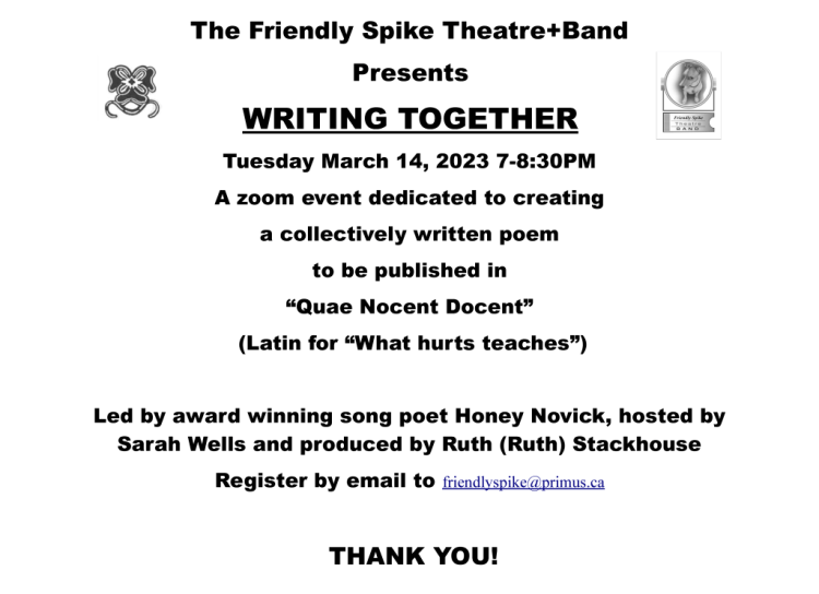 A Zoom workshop with the purpose of creating a collectively written poem for our up and coming anthology -Friendly Spike
